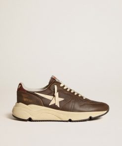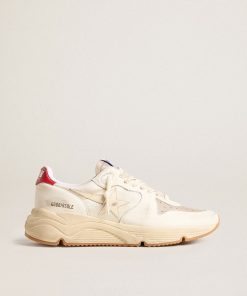 Golden Goose Running Sole Uomo In Nappa Con Stella In Pelle Beige E Talloncino Rosso | Uomo Scarpe