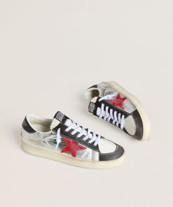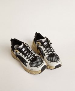 Golden Goose Lightstar Uomo In Pelle Laminata E Mesh Argento E Stella Grigia | Uomo Scarpe