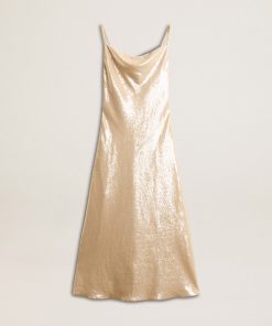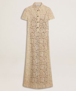 Golden Goose Vestito Da Donna Midi In Misto Seta Con Stampa Floreale | Beige E Nero | Donna Men’s