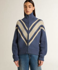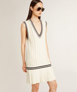 Golden Goose Vestito Gilet In Cotone Da Donna Di Colore Bianco Vissuto Con Costine Blu Scuro E Cristalli | Bianco Vissuto | Donna Men’s