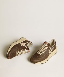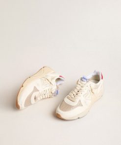 Golden Goose Running Sole Uomo In Nappa Con Stella In Pelle Beige E Talloncino Rosso | Uomo Scarpe