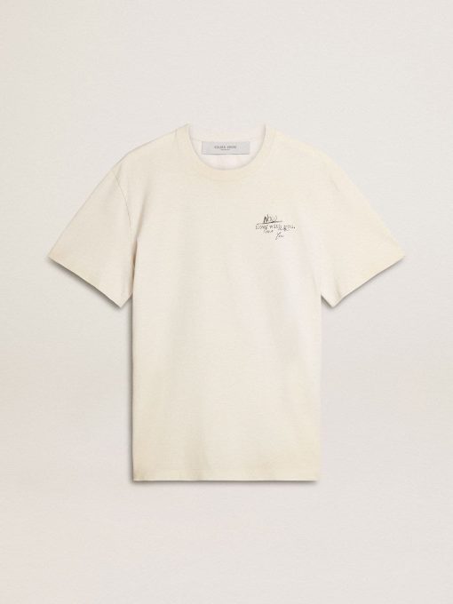 Golden Goose T-shirt Da Uomo Con Stampa Sul Cuore E Sul Retro Dall’effetto Lived-in | Bianco Vissuto | Uomo Men’s