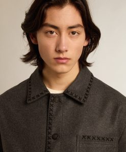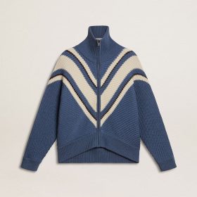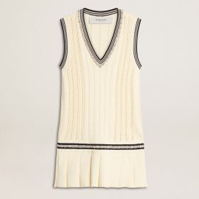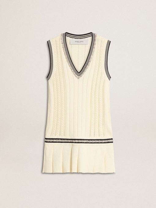 Golden Goose Vestito Gilet In Cotone Da Donna Di Colore Bianco Vissuto Con Costine Blu Scuro E Cristalli | Bianco Vissuto | Donna Men’s