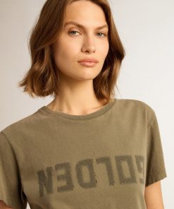 Golden Goose T-shirt Da Uomo In Cotone Color Grigio Con Stampa Vintage Sul Davanti | Grigio Melange | Uomo Men’s