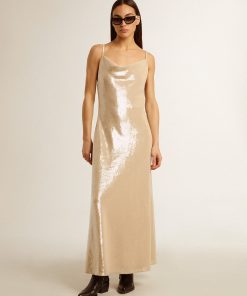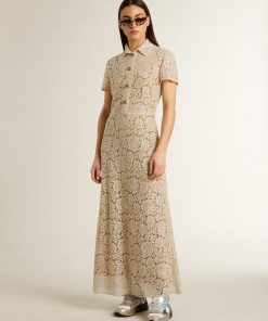 Golden Goose Vestito Da Donna Midi In Misto Seta Con Stampa Floreale | Beige E Nero | Donna Men’s