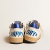 Sognando gli anni Ottanta. Le nostre sneaker Ball Star si rifanno all’atmosfera dei college americani, tra un tiro a canestro e un giro in skateboard. Con la tomaia in nappa e rete bianche, questo modello si distingue per la stella in pelle laminata color argento e per il talloncino in pelle blu. E come tocco finale, gli inserti in pelle cracklé bianca, il dettaglio rosso, e i lacci color beige: le cose belle che non passano mai di moda.