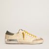 Un’icona senza tempo, ma in continua evoluzione. In Golden, amiamo prendere i nostri classici e reinterpretarli costantemente, sempre sotto una luce diversa. Con la tomaia in suede di colore beige, queste Super-Star da uomo si distinguono per la stella in pelle azzurra e per il talloncino in pelle bordeaux stampa cocco. E come tocco finale, gli inserti color tabacco e i lacci neri.