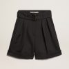 Una storia d’amore per la nostra casa, Marghera. Dove tutto è cominciato. La nostra ultima collezione riflette lo spirito del nostro luogo di nascita, i suoi contrasti, l’anima industriale e i paesaggi manifatturieri, intrecciando ispirazioni provenienti sia dalla vibrante energia dell’abbigliamento da lavoro sia dalla raffinata essenza della sartoria tradizionale. In seta misto viscosa color verde, questa camicia da donna si caratterizza per il motivo floreale stampato all-over e per il ricamo con cristalli sul colletto.