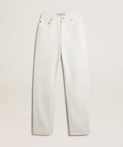 Golden Goose Pantalone Da Donna In Cotone Denim Color Bianco Ottico | Bianco Ottico | Donna Men’s
