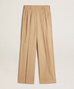Golden Goose Pantalone Da Donna In Gabardine Di Lana Color Sabbia | Sabbia | Donna Men’s