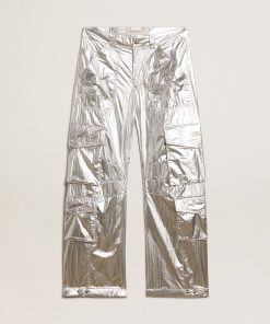 Golden Goose Pantalone Cargo Donna In Tessuto Tecnico Argentato | Argento | Donna Men’s