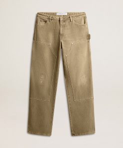 Golden Goose Pantalone Da Donna In Cotone Dall’effetto Distressed | Oliva Chiaro | Donna Men’s
