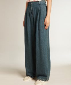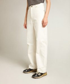 Golden Goose Pantalone Da Donna In Cotone Denim Color Bianco Ottico | Bianco Ottico | Donna Men’s