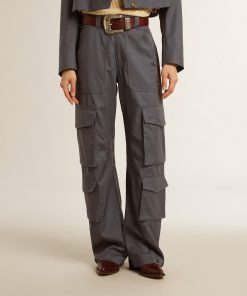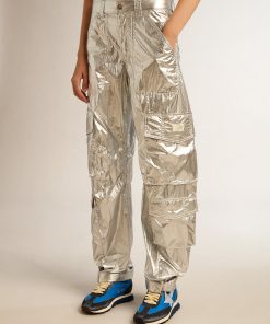 Golden Goose Pantalone Cargo Donna In Tessuto Tecnico Argentato | Argento | Donna Men’s