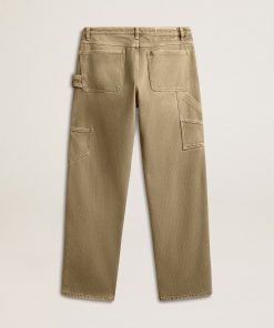 Golden Goose Pantalone Da Donna In Cotone Dall’effetto Distressed | Oliva Chiaro | Donna Men’s