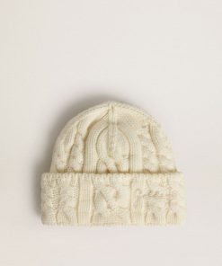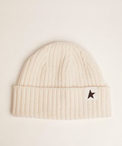 Golden Goose Uomo Accessori Berretto In Lana Color Bianco Con Stella Nera | Bianco Papyrus