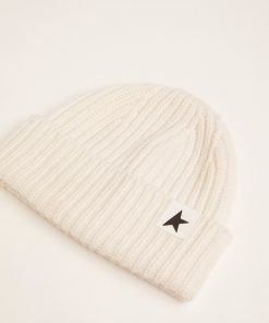 Golden Goose Uomo Accessori Berretto In Lana Color Bianco Con Stella Nera | Bianco Papyrus