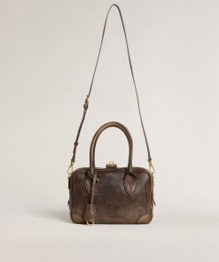 Golden Goose Donna Borse Vita Bag In Pelle Vintage Marrone E Dettagli Oro