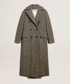 Golden Goose Cappotto Lungo Herringbone Donna Con Dettagli Gialli | Grigio Antracite | Donna Men’s