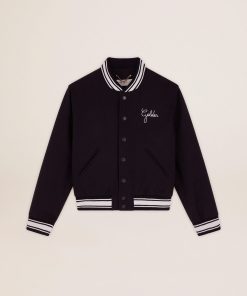 Golden Goose Giacca Bomber Da Donna In Lana Blu Scuro Con Dettagli Bianchi | Blu Scuro | Donna Men’s