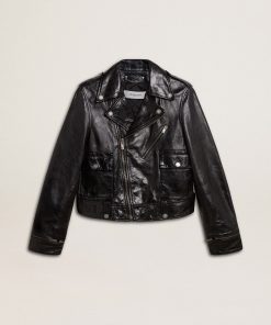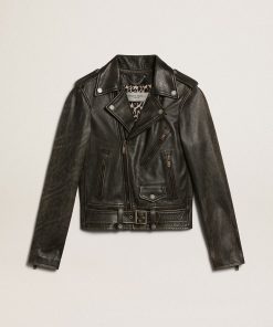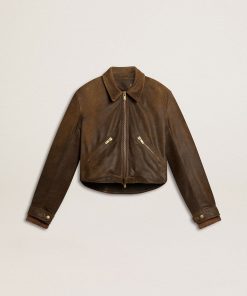 Golden Goose Chiodo Da Donna In Pelle Cropped Color Marrone Con Zip | Marrone | Donna Men’s
