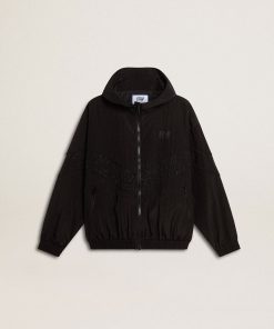 Golden Goose Giacca A Vento Da Donna In Nylon Nero Con Cristalli Ton Sur Ton | Nero | Donna Men’s
