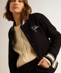 Golden Goose Giacca Bomber Da Donna In Lana Blu Scuro Con Dettagli Bianchi | Blu Scuro | Donna Men’s