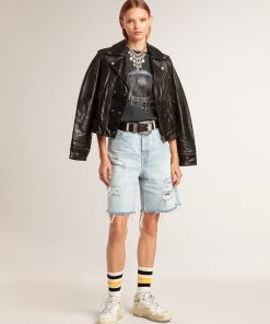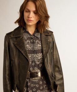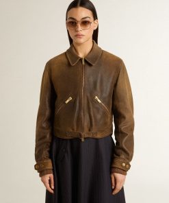 Golden Goose Chiodo Da Donna In Pelle Cropped Color Marrone Con Zip | Marrone | Donna Men’s