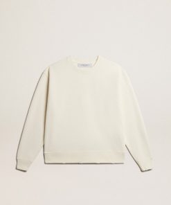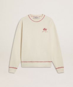 Golden Goose Donna Men’s Felpa Cny In Cotone Color Bianco Vissuto Con Ricamo Rosso | Bianco Vissuto