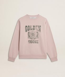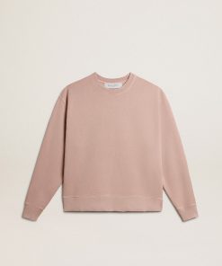 Golden Goose Donna Men’s Felpa Unisex In Cotone Color Malva Con Stampa Frontale | Malva