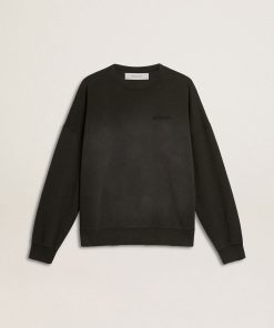 Golden Goose Donna Men’s Felpa Unisex In Cotone Color Nero Vissuto Con Ricamo Logato | Nero Vissuto