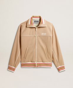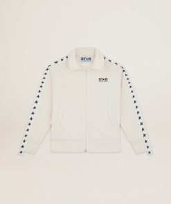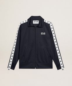 Golden Goose Donna Men’s Felpa Blu Scura Con Zip E Nastro Bianco E Stelle A Contrasto | Blu Scuro