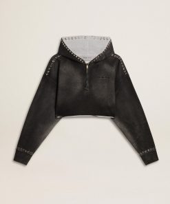 Golden Goose Donna Men’s Felpa Cropped Color Grigio Dall’effetto Lived-in | Grigio Antracite