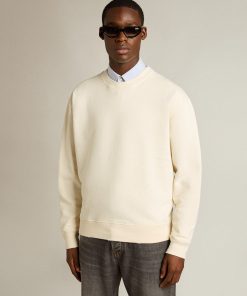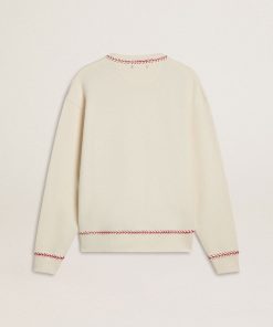 Golden Goose Donna Men’s Felpa Cny In Cotone Color Bianco Vissuto Con Ricamo Rosso | Bianco Vissuto