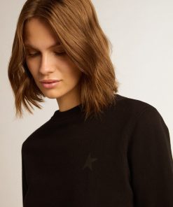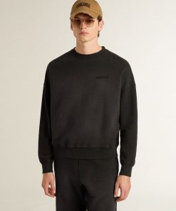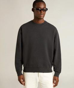 Golden Goose Donna Men’s Felpa Unisex In Cotone Color Nero Vissuto Con Ricamo Logato | Nero Vissuto