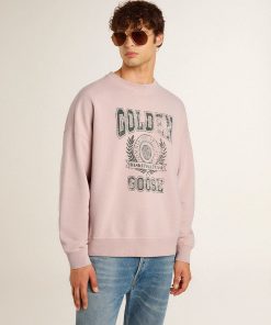 Golden Goose Donna Men’s Felpa Unisex In Cotone Color Malva Con Stampa Frontale | Malva