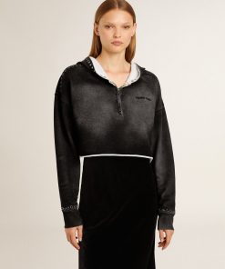 Golden Goose Donna Men’s Felpa Cropped Color Grigio Dall’effetto Lived-in | Grigio Antracite