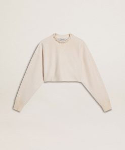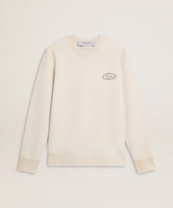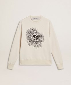 Golden Goose Felpa Da Donna In Cotone Color Bianco Vissuto Con Ricamo | Bianco Vissuto | Donna Men’s