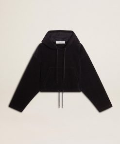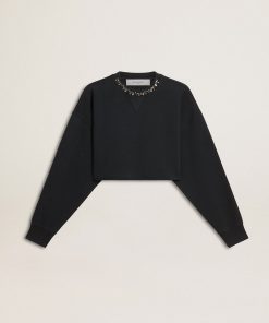 Golden Goose Felpa Cropped Da Donna In Cotone Con Cristalli Sul Davanti | Nero | Donna Men’s