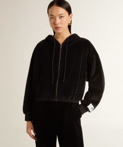 Golden Goose Felpa In Ciniglia Da Donna Di Colore Nero Con Ricamo Sulla Schiena | Nero | Donna Men’s