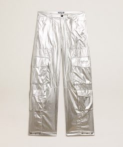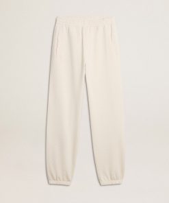 Golden Goose Donna Men’s Pantalone Di Color Ecrù Con Paillettes Trasparenti All-over | Ecrù