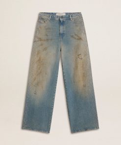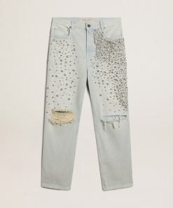 Golden Goose Jeans Bleached Da Donna Con Cristalli Cabochon | Blu Bleached | Donna Men’s