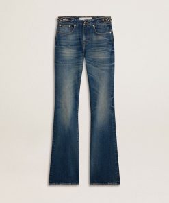 Golden Goose Jeans Bootcut Da Donna Dal Lavaggio Vintage E Dettagli Metallici | Blu | Donna Men’s
