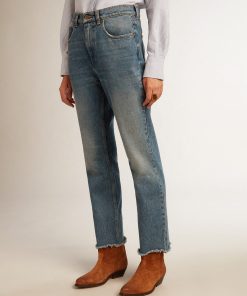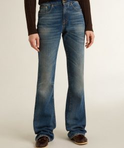 Golden Goose Jeans Bootcut Da Donna Dal Lavaggio Vintage E Dettagli Metallici | Blu | Donna Men’s