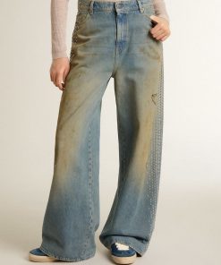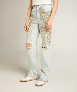 Golden Goose Jeans Bleached Da Donna Con Cristalli Cabochon | Blu Bleached | Donna Men’s