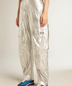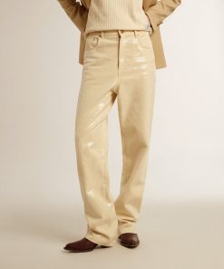 Golden Goose Donna Men’s Pantalone Di Color Ecrù Con Paillettes Trasparenti All-over | Ecrù