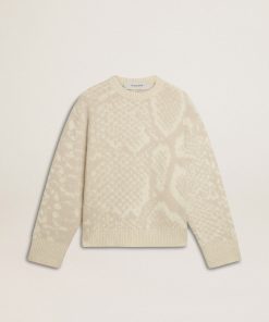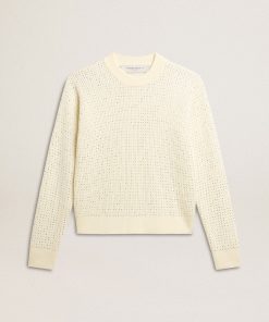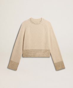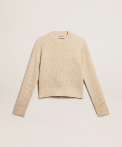 Golden Goose Donna Men’s Maglione Cropped Girocollo In Lana Color Beige E Cristalli All Over | Beige