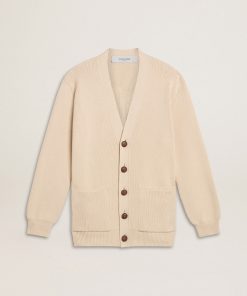 Golden Goose Cardigan Da Donna Di Colore Beige Con Scritta ‘golden’ Sul Retro | Beige | Donna Men’s