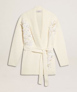Golden Goose Cardigan Da Donna In Cotone Color Panna Con Ricamo Floreale | Panna | Donna Men’s
