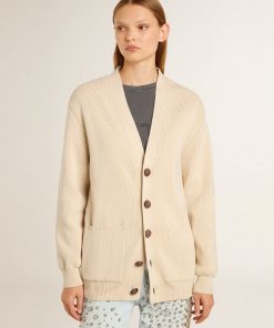 Golden Goose Cardigan Da Donna Di Colore Beige Con Scritta ‘golden’ Sul Retro | Beige | Donna Men’s
